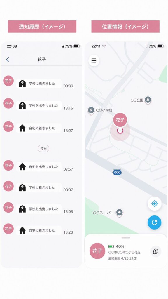 学校によっては予定より早く帰る日も多く、「いつ迎えに行くべきか」で悩むことがありましたが、GPSで子どもが学校を出たタイミングが分かるので、とても助かっています。